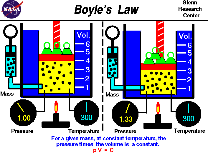 Therefore, with temperature being constant, the volume decreases as pressure increases and vice versa. The following graphic, provided by the National Aeronautics and Space Administration (NASA) should provide added clarity.