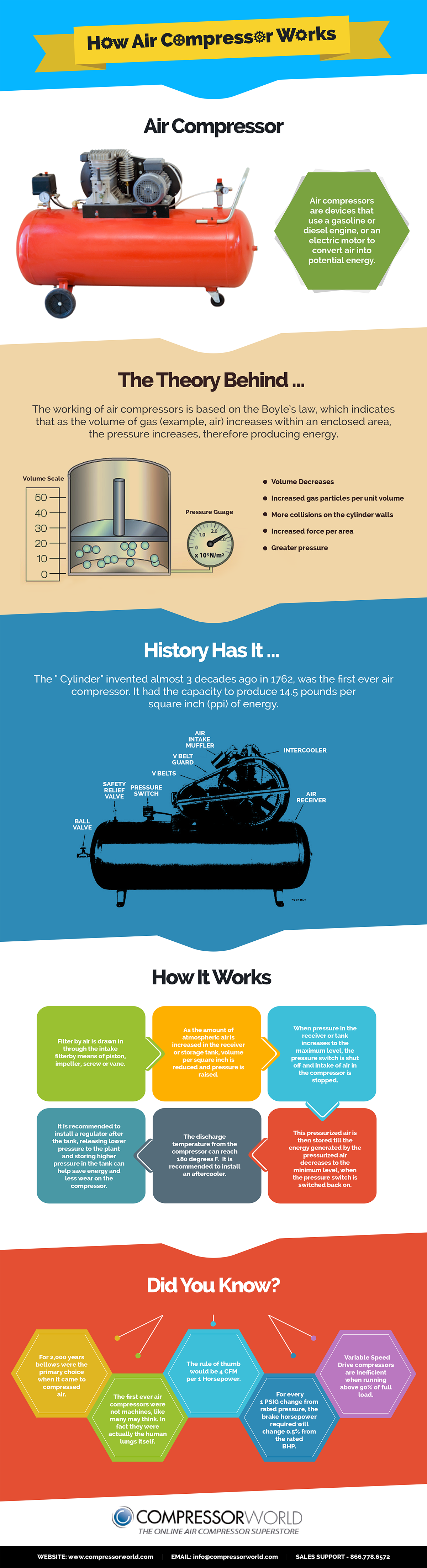 If you're new to the world of air compressors, knowing how they work can be advantageous knowledge that comes with a sizeable learning curve. The best first step is understanding Boyle's Law, which is the main underlying mechanism. It states that when the temperature of gas is constant, its volume and pressure are inversely proportional.