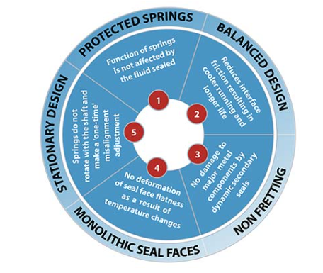 - Balanced Design - Reduced hydraulic pressure area on seal faces creates better lubrication, lower heat generation, and decreased wear.